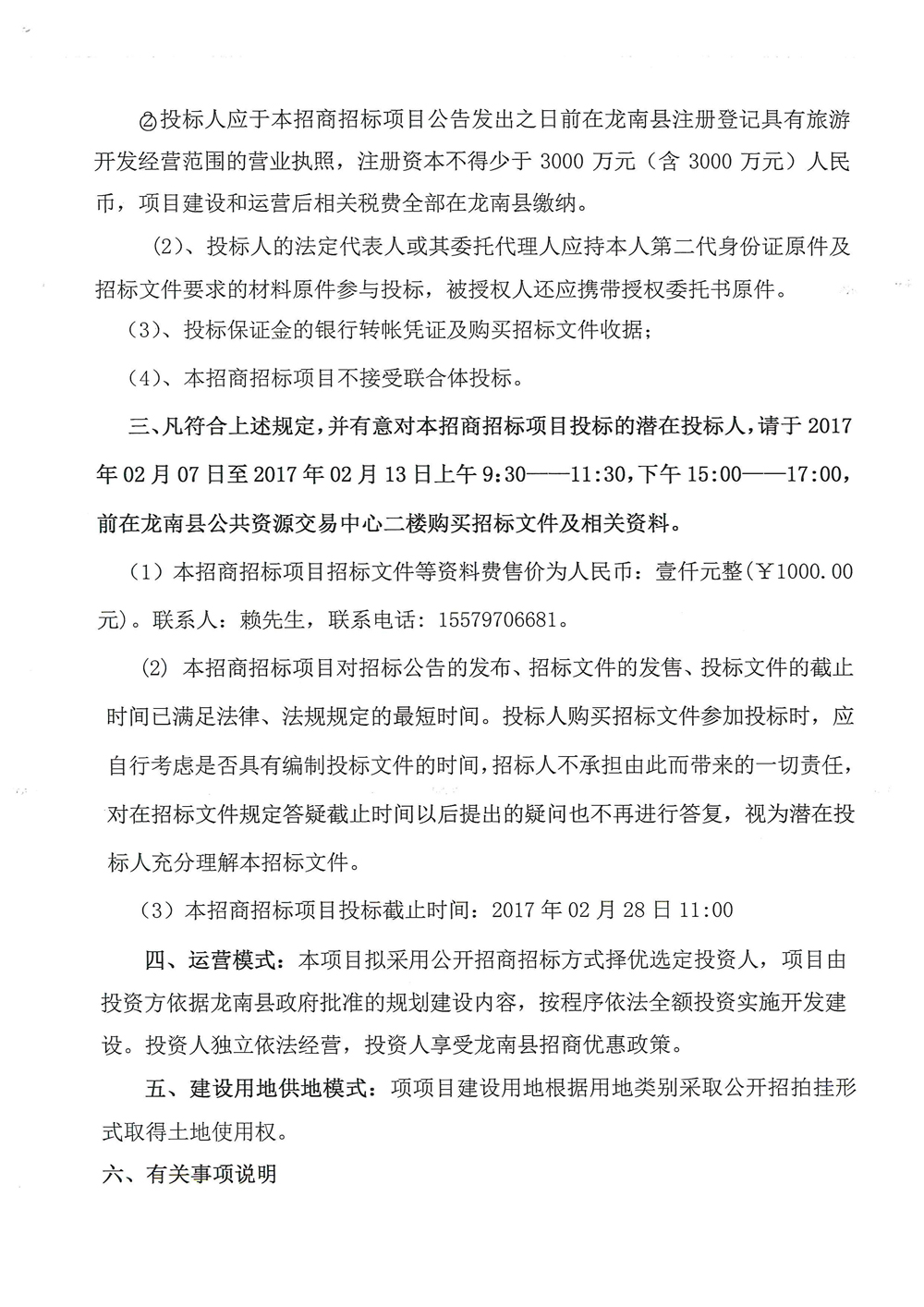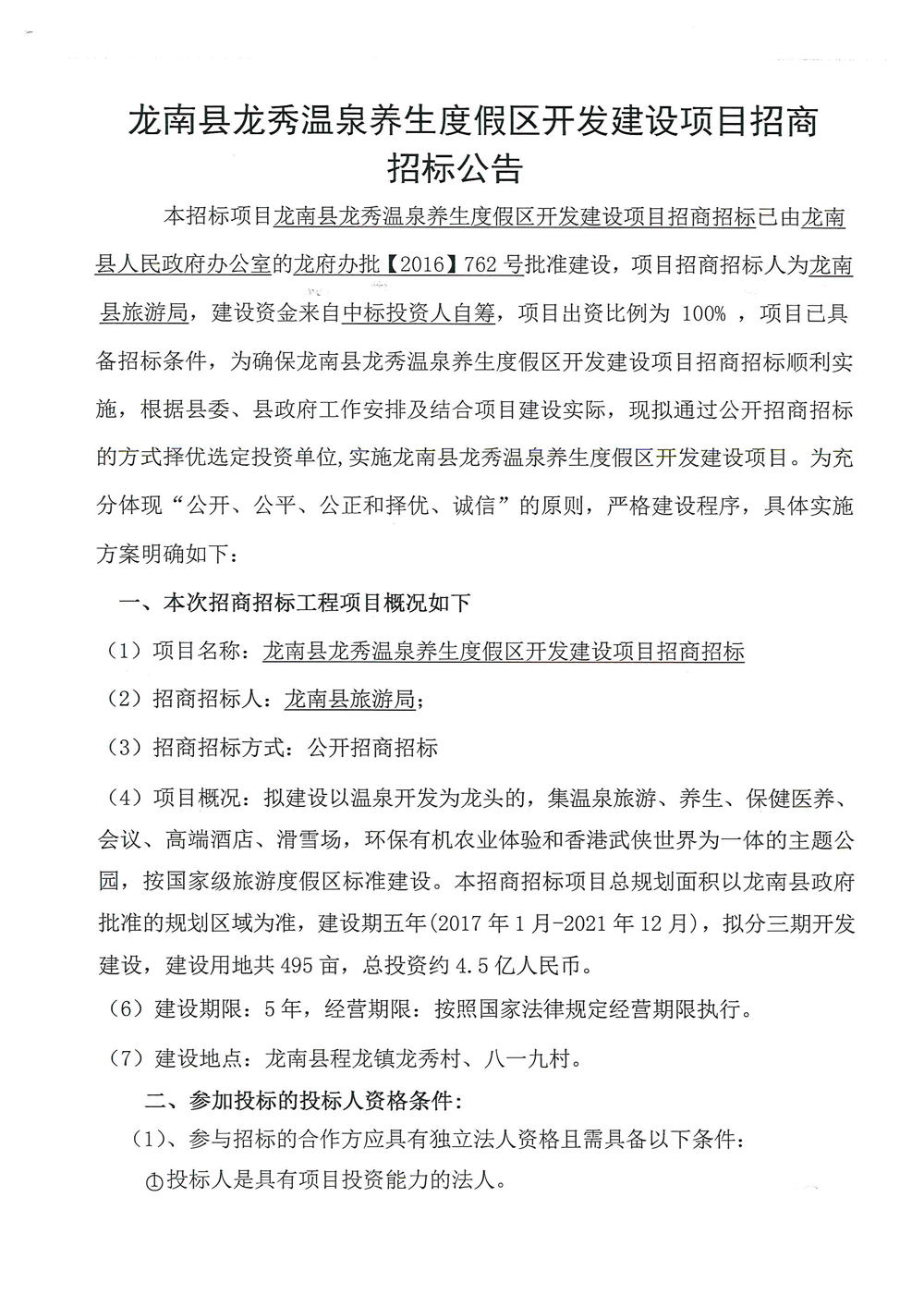 龙南县龙秀温泉养生度假区开发建设项目招商招标公告